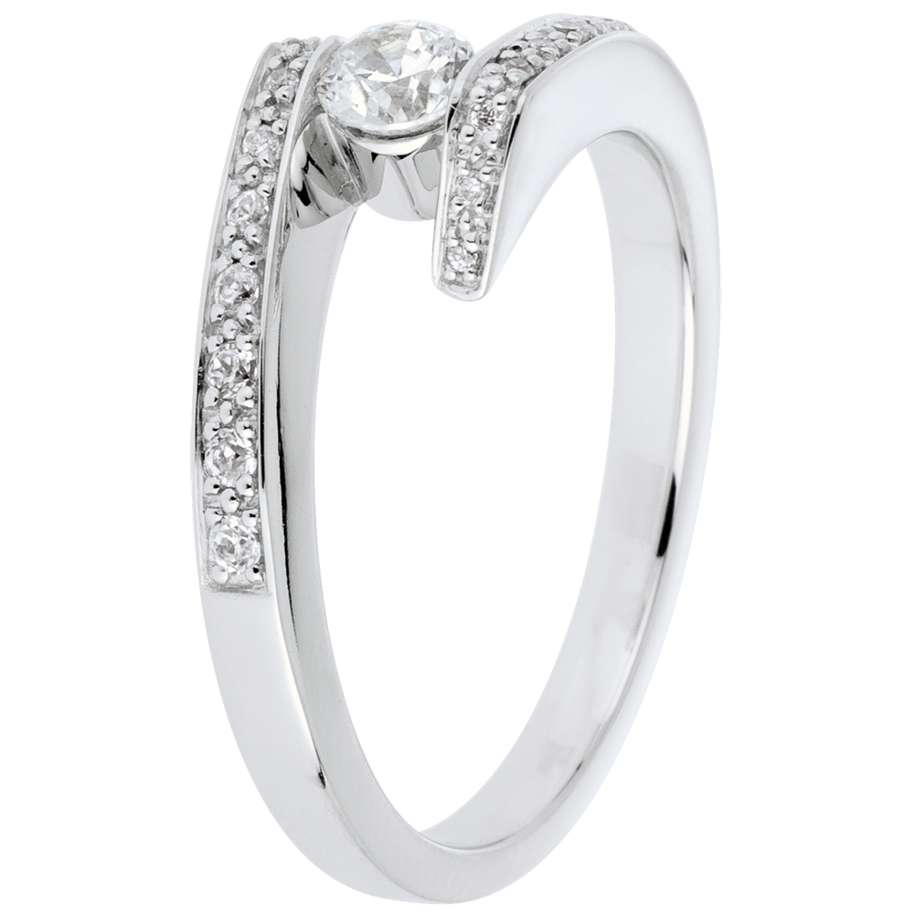 Solitario accompagnato Nido Prezioso - Promessa - Oro bianco - 9 carati - Diamante - 0.22 carati