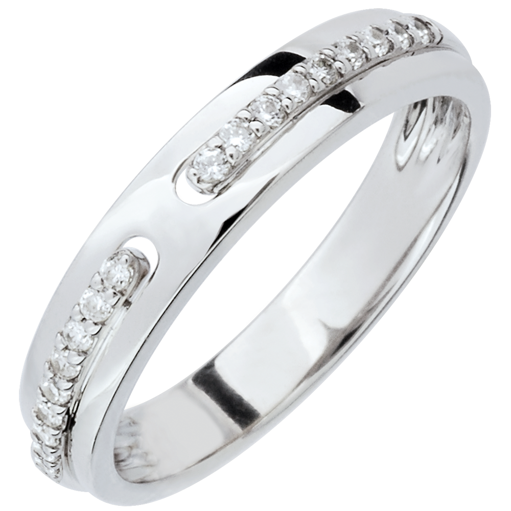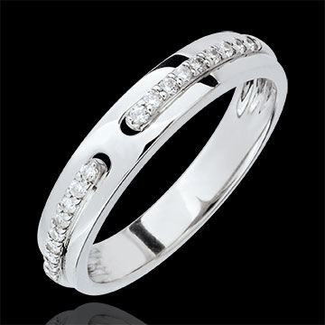 Due linee di diamanti sono unite come una promessa d'eternità racchiusa in un anello in Oro bianco.