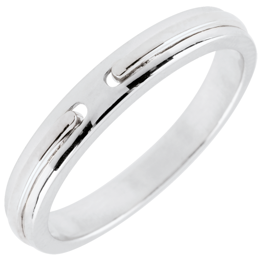 Due linee d'Oro sono unite come una promessa d'eternità racchiusa in un anello in Oro bianco.