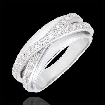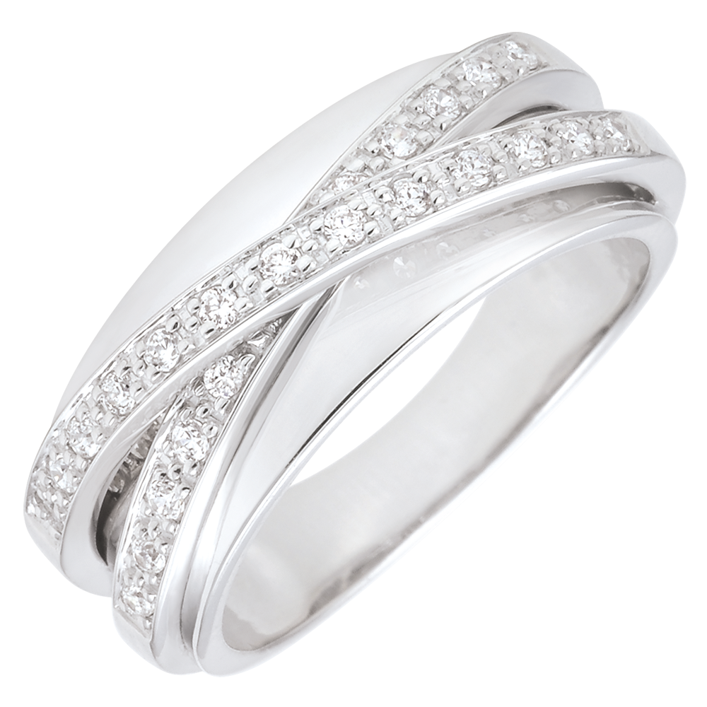 Un gioco di anelli in Oro bianco con prezioso pavé di diamanti.