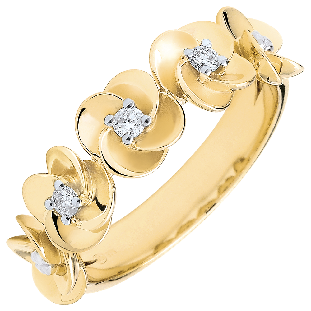 Anello Sboccio - Corona di rose - Oro giallo e Diamanti - 18 carati