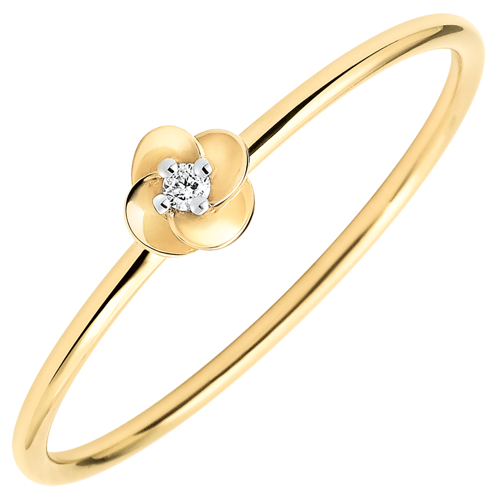 Anello Sboccio - Prima rosa - modello piccolo - Oro giallo e Diamante - 9 carati