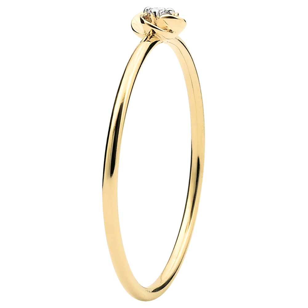 I petali di questa piccola rosa in oro giallo si schiudono su un cuore eterno di diamante.