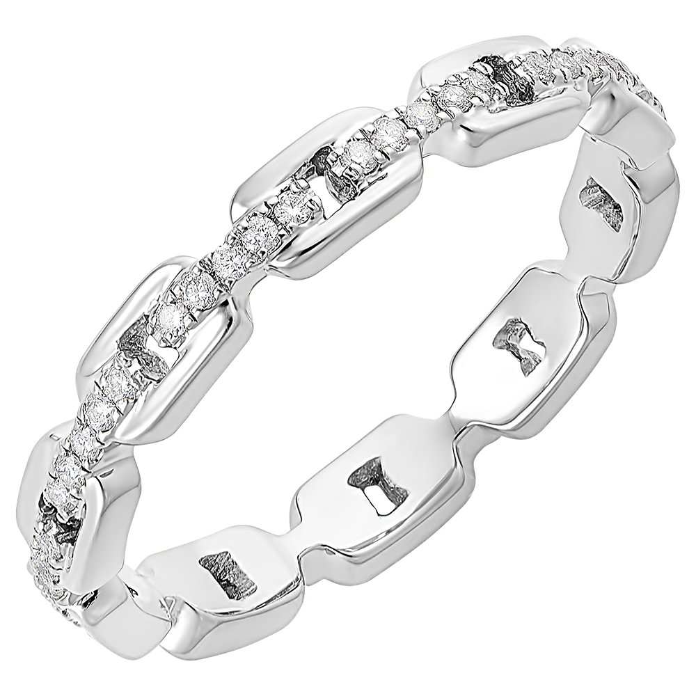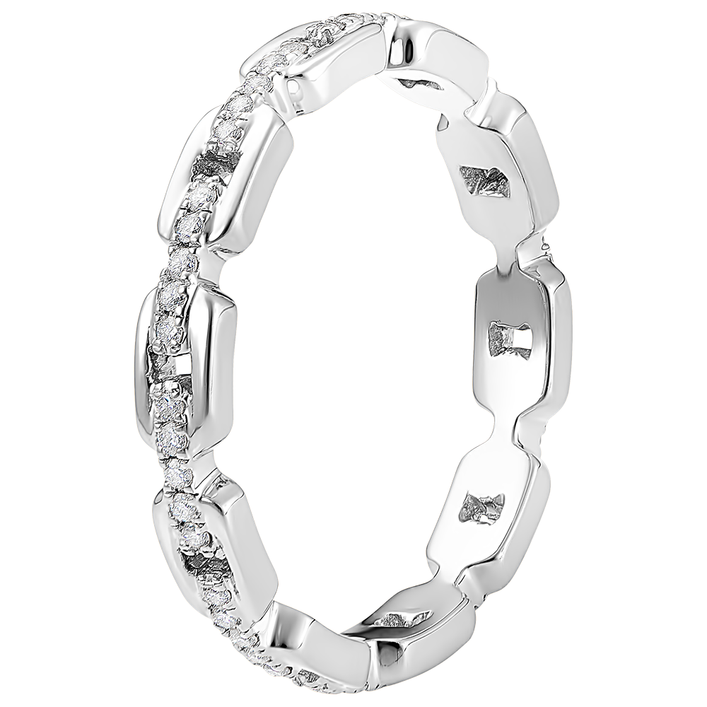Delle ampie maglie cubane la cui baguette è impreziosita da diamanti illuminano questo anello in oro bianco, un classico rivisitato.