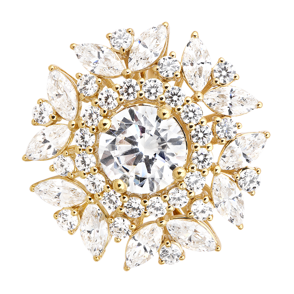 I petali con taglio marquise e brillante creano un alone scintillante, simbolo di luce intensa e amore radioso.