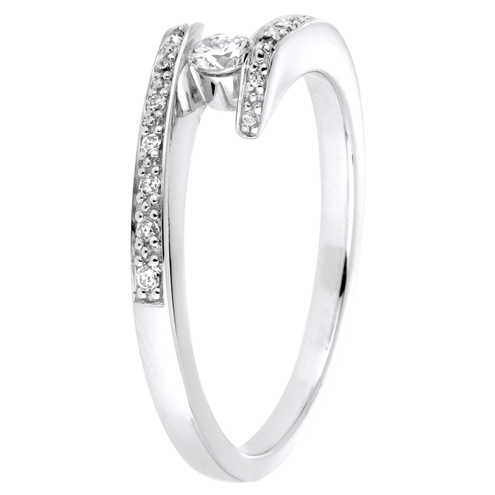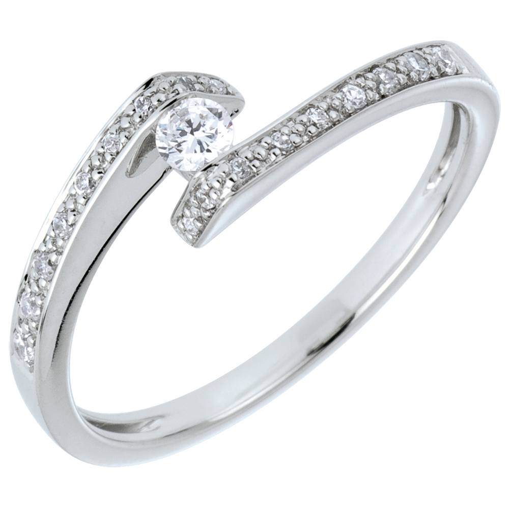 Solitario accompagnato Nido Prezioso - Promessa - Oro bianco - 18 carati -Diamanti - 0.17 carati