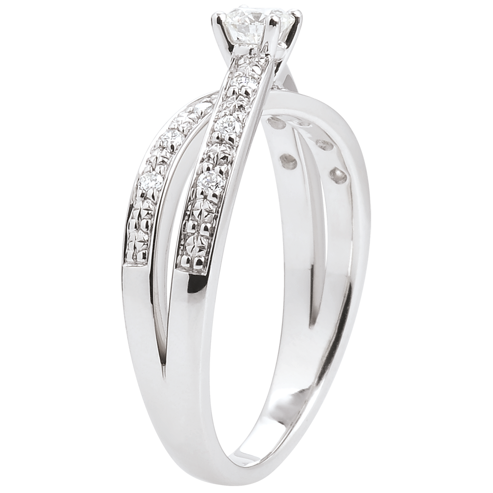 Anello Solitario Saturno Duetto doppio diamante -Oro bianco - 18 carati - Diamanti - 0.246 carati