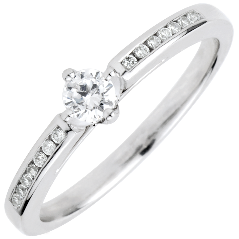 Anello Solitario Divina - 4 griffe - Oro bianco - 9 carati - 15 Diamanti - 0.23 carati