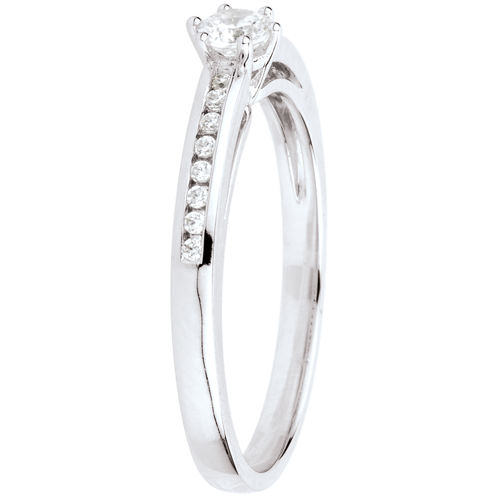 Anello Solitario Divina - 6 griffe - Oro bianco - 18 carati - 17 Diamanti - 0.25 carati