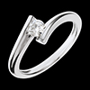 Un anello scintillante e sobrio grazie a una montatura sinuosa in Oro bianco che esalta un diamante solitario.