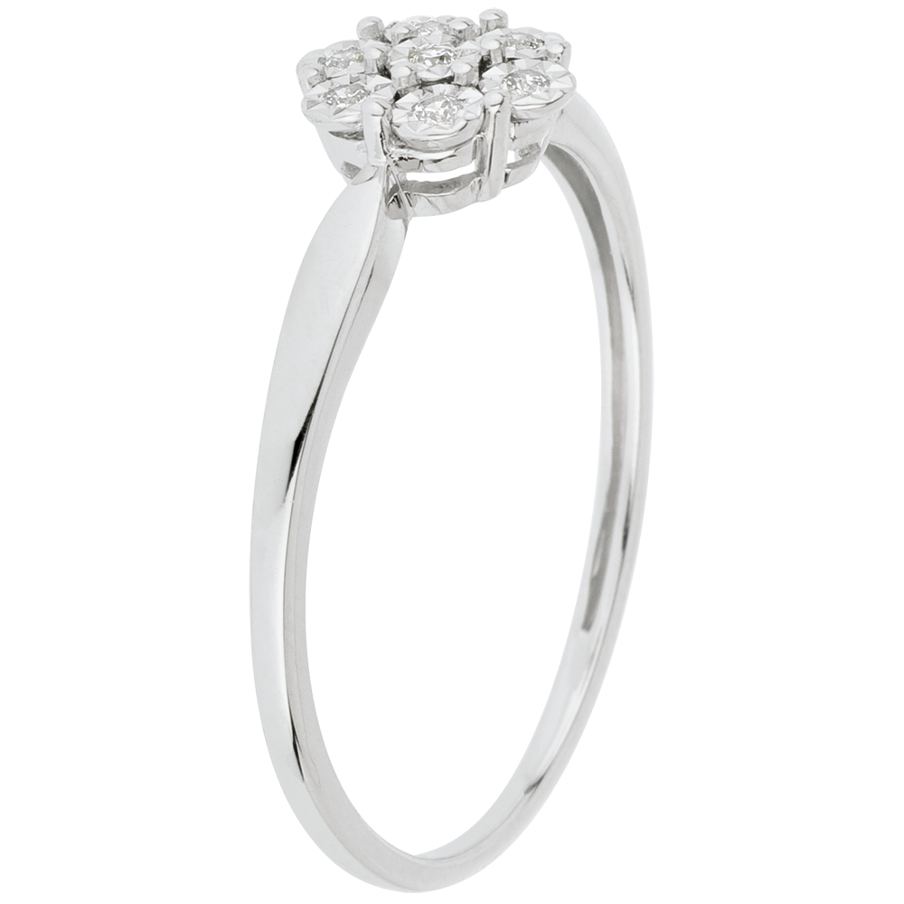 Anello Solitario Freschezza - Oro bianco - 18 carati Fiore di Fiocco - 7 diamanti