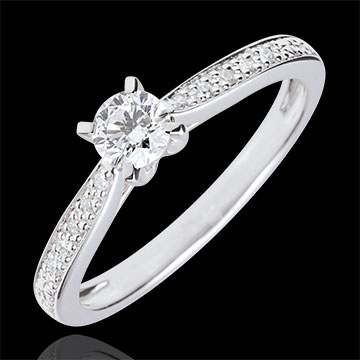 Anello solitario Garlane - 4 griffe - Oro bianco - 9 carati - 11 Diamanti - 0.30 carati - Diamante centrale - 0.25 carati
