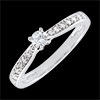 Un diamante solitario esaltato da una raffinata montatura in Oro bianco costellata di diamanti.