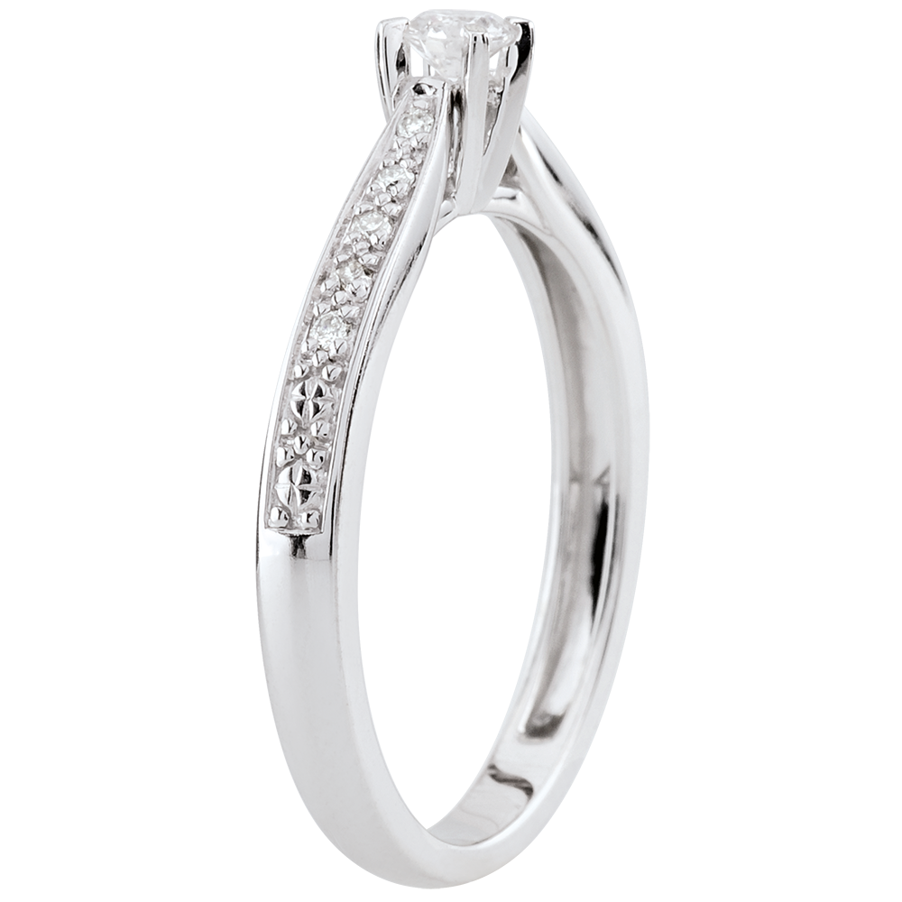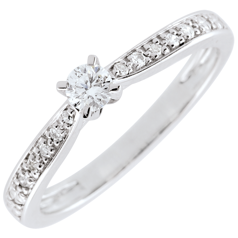 Anello solitario Garlane - 4 griffe - Oro bianco - 18 carati - 11 Diamanti - 0.15 carati - Diamante centrale - 0.10 carati