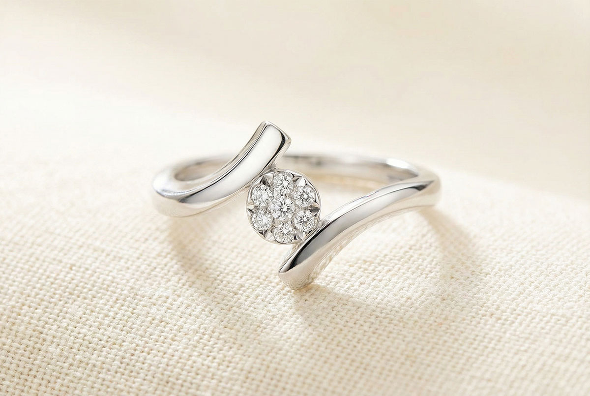 Sette diamanti brillano insieme, abbracciati da una montatura semplice e moderna.