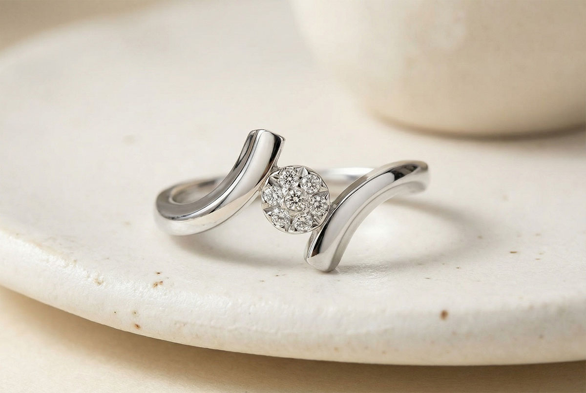 Anello Nido Prezioso - Pepita d'Amore - Oro bianco - 9 carati - Diamanti
