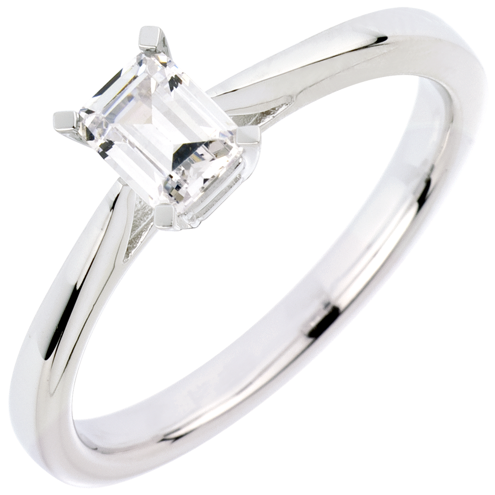 Anello Solitario Purezza taglio Smeraldo - Oro bianco - 18 carati - Diamante - 0.50 carati