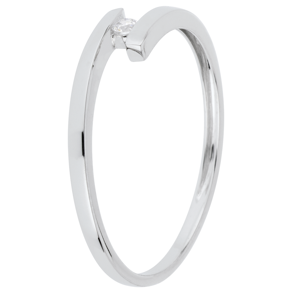 Una moderna montatura in Oro bianco sublima un diamante solitario con eleganza e semplicità.