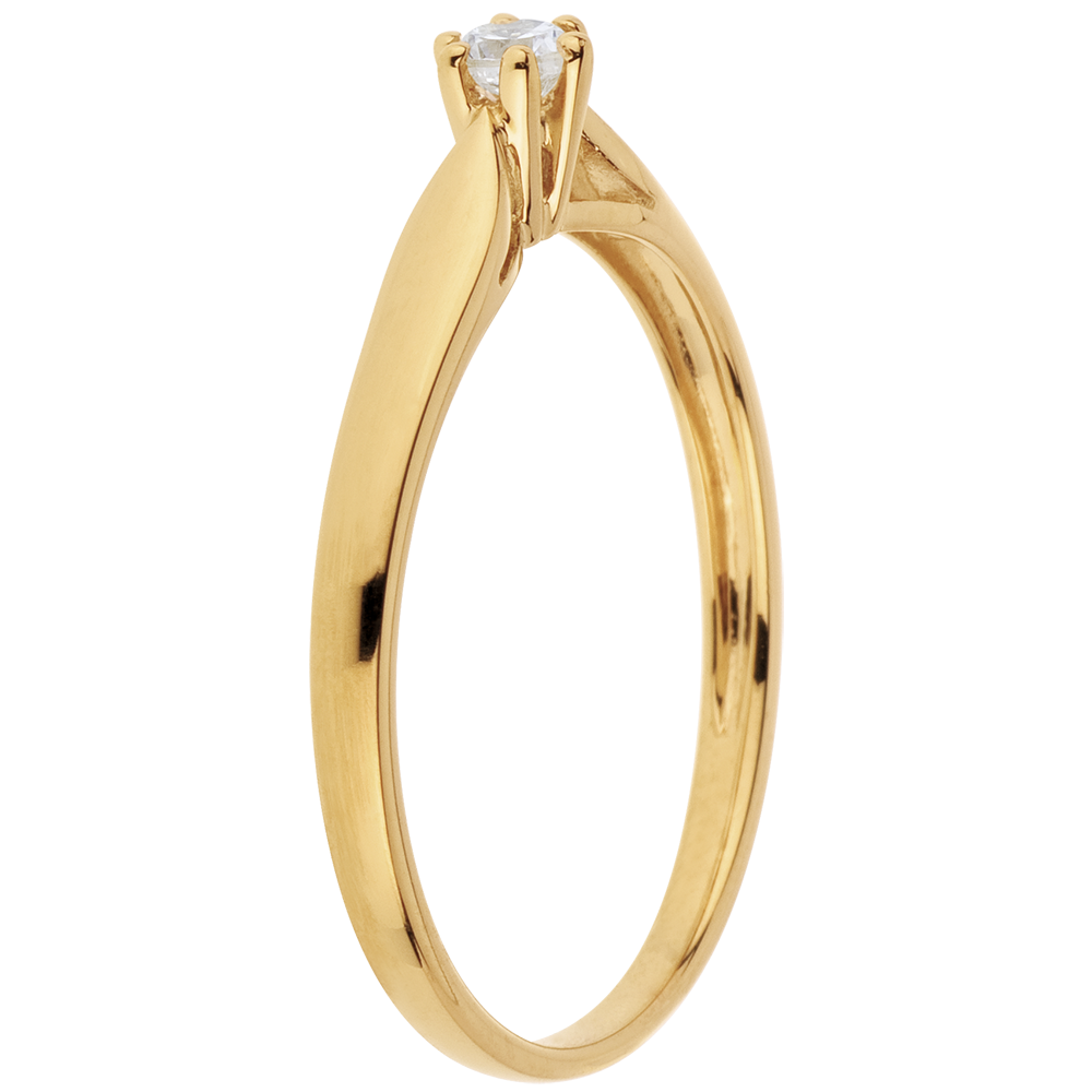 La delicatezza di un anello a gambo smussato, coronato da un diamante su montatura a 6 griffes.