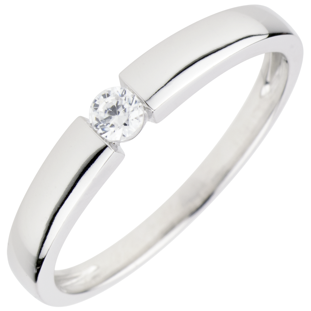 Anello Solitario Tesoro - Oro bianco - 18 carati - Diamante - 0.1 carati