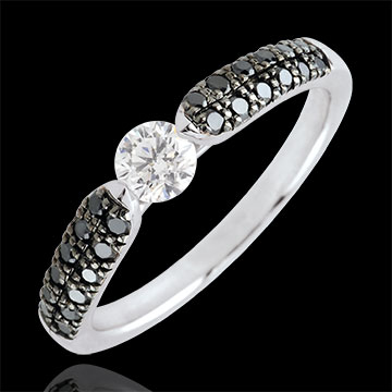 Anello solitario Trionfale - Oro bianco - 18 carati -Diamanti neri e Diamante bianco - 0.45 carati e 0.25 carati
