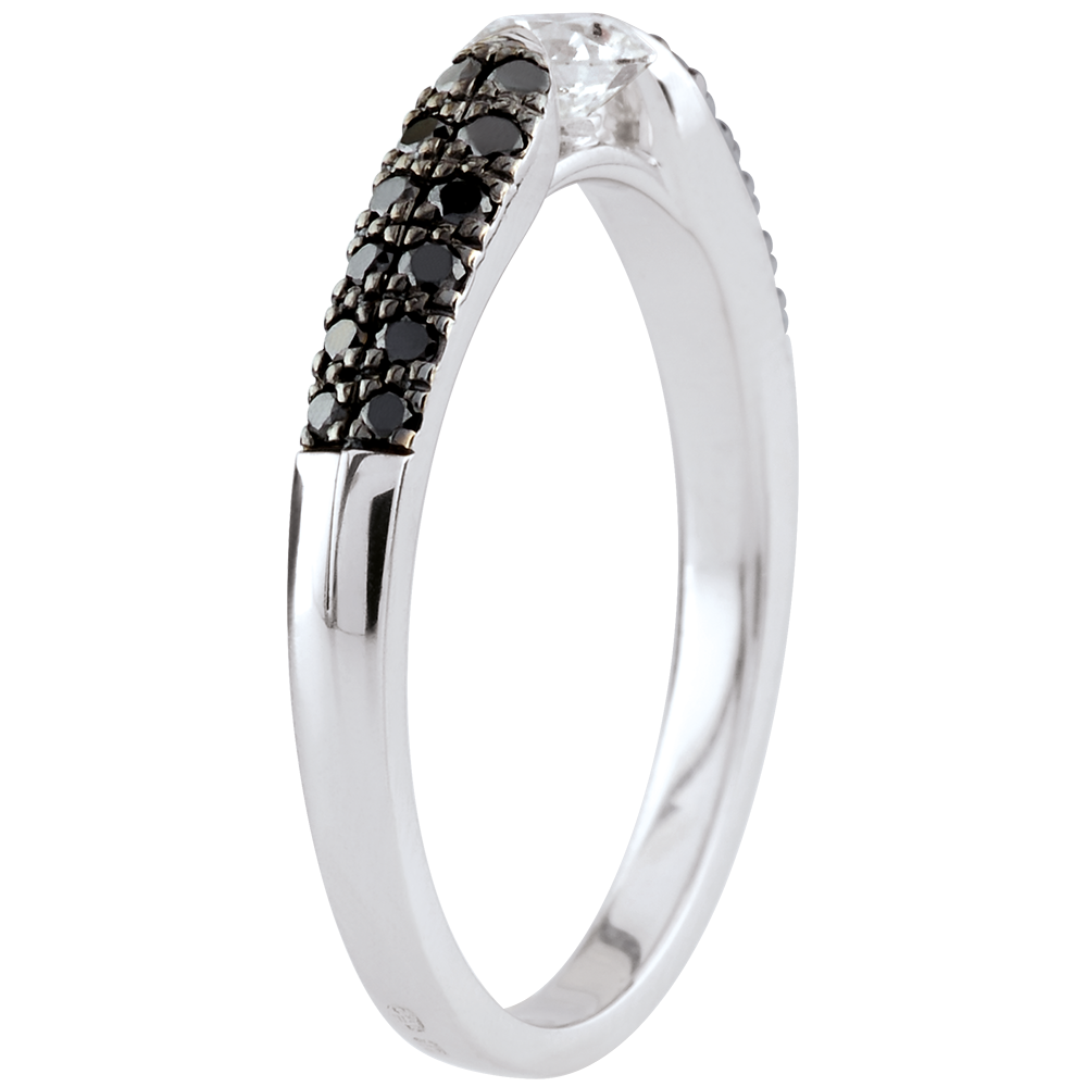 Anello solitario Trionfale - Oro bianco - 9 carati -Diamanti neri e Diamante bianco - 0.45 carati e 0.25 carati