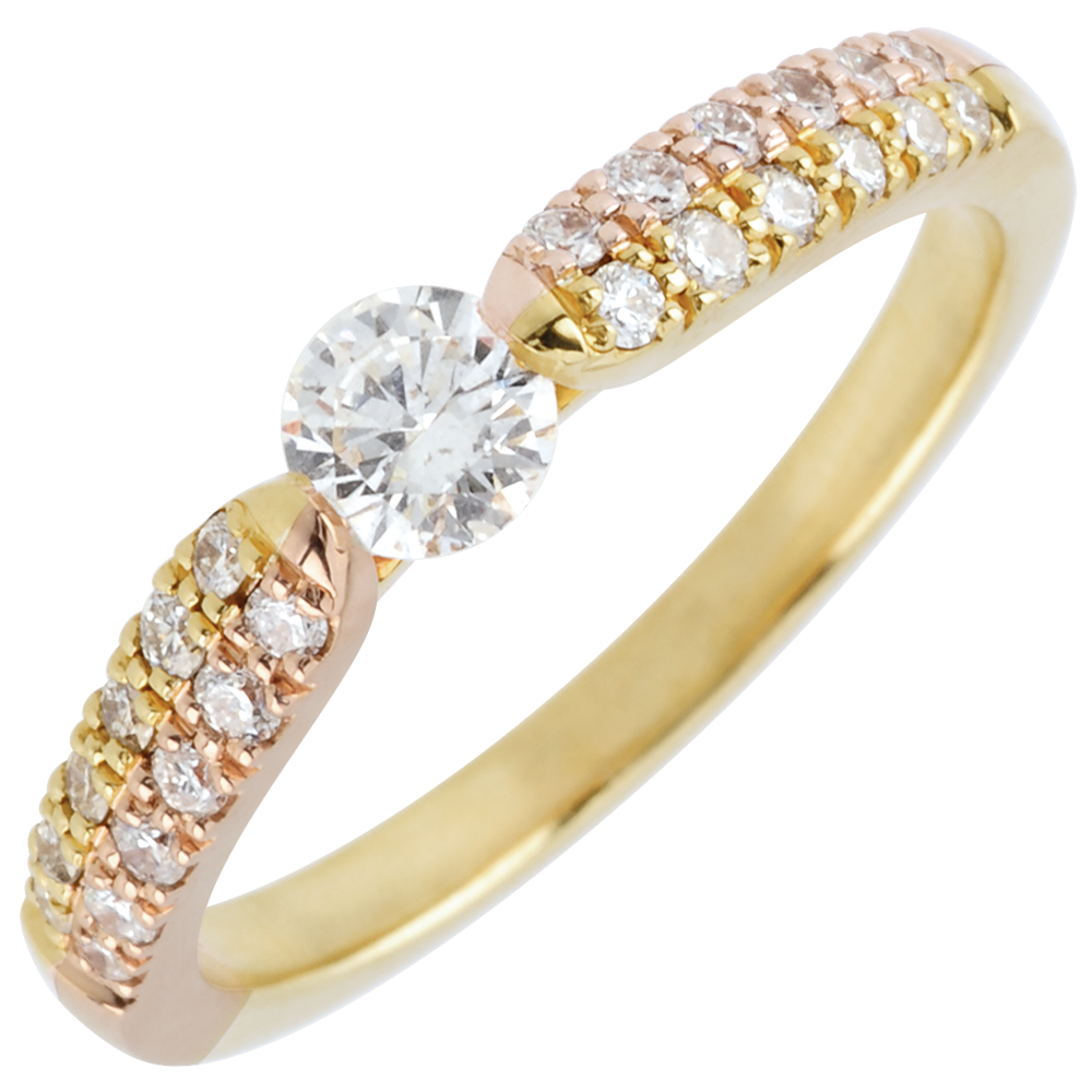 Anello solitario Trionfale - Oro giallo e Oro rosa - 9 carati - Diamanti - 0.45 carati - Diamante centrale -0.25 carati