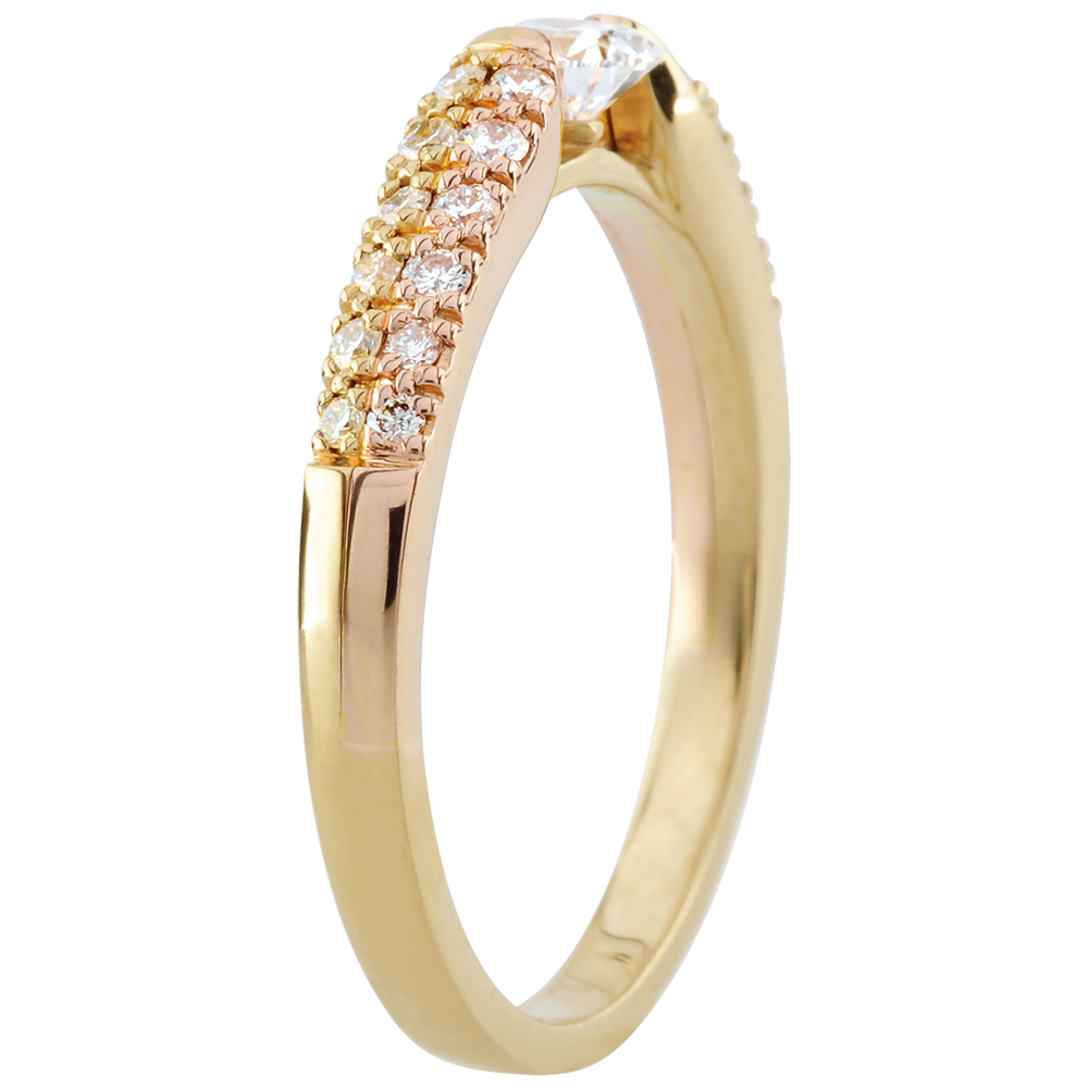 Un sublime solitario abbina con eleganza Oro giallo e Oro rosa a diamanti bianchi.