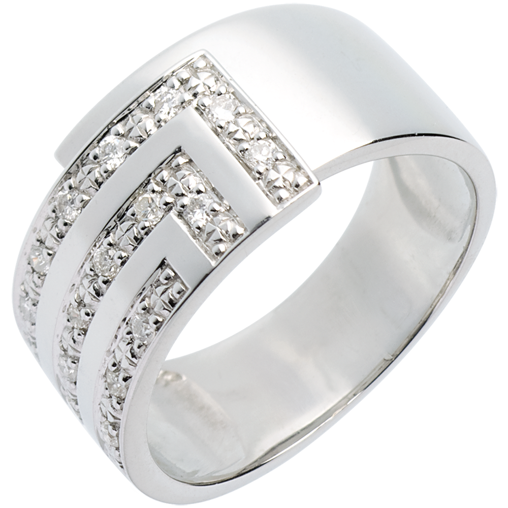 Anello Squadra - Oro bianco pavé - 18 carati - 17 Diamanti - 0.19 carati
