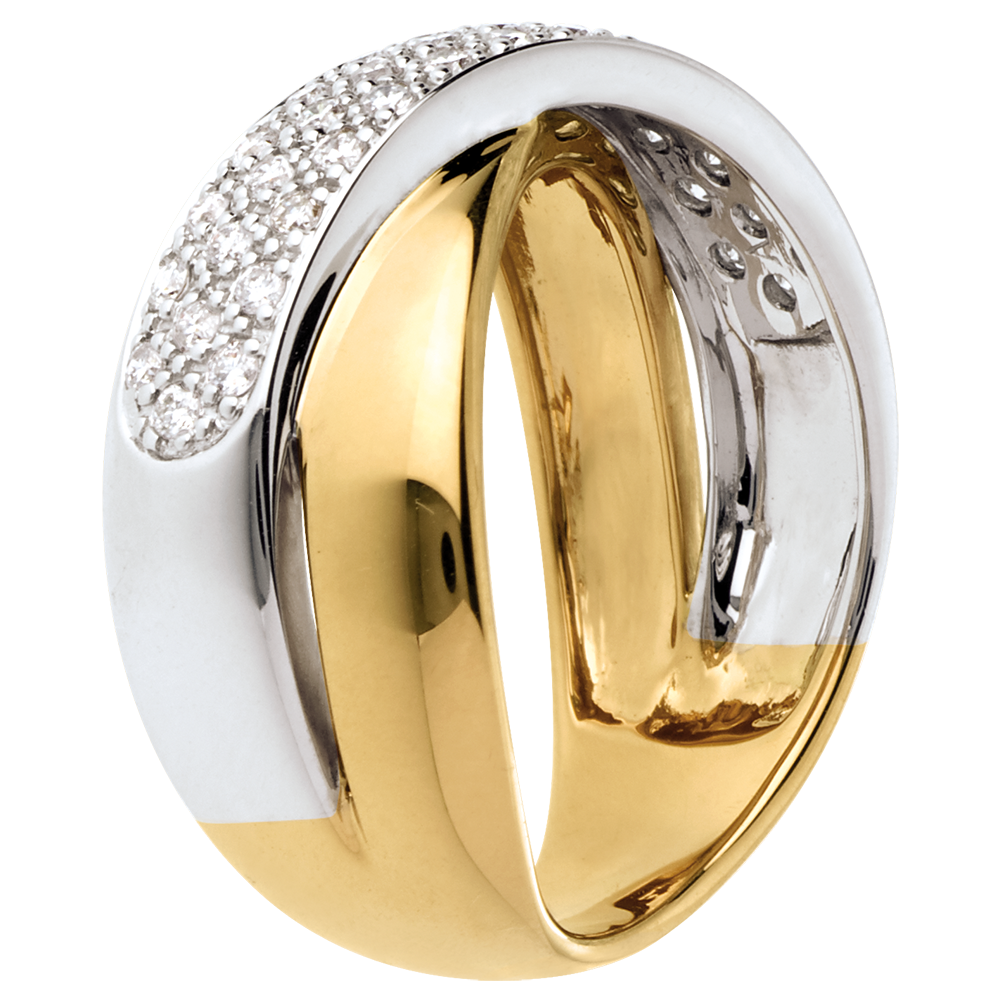 Anello Tandem semi pavé - Oro bianco e Oro giallo - 18 carati - 40 Diamanti