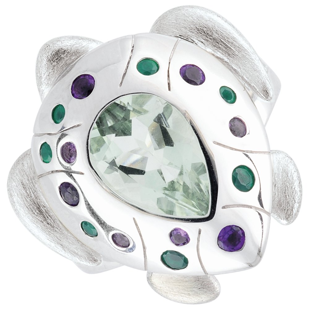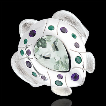 PASSEGGIATA IMMAGINARIA N. 10Anello Animale - Argento massiccio - Ametista verde, Agata verde, Ametista ID : 6289