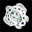 Al centro, un’ametista verde di qualità Very Good illumina l’anello, circondata da ametiste viola e agate verdi che donano profondità e brillantezza a questo gioiello unico.