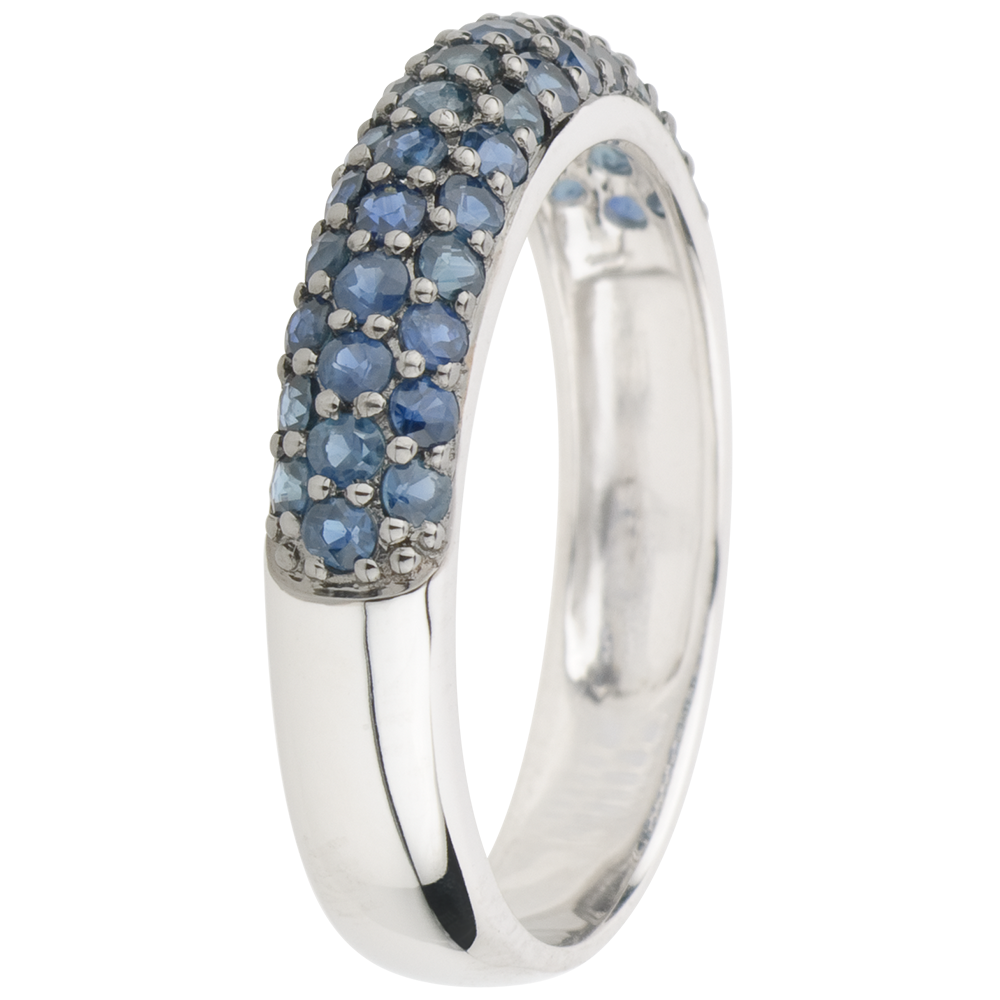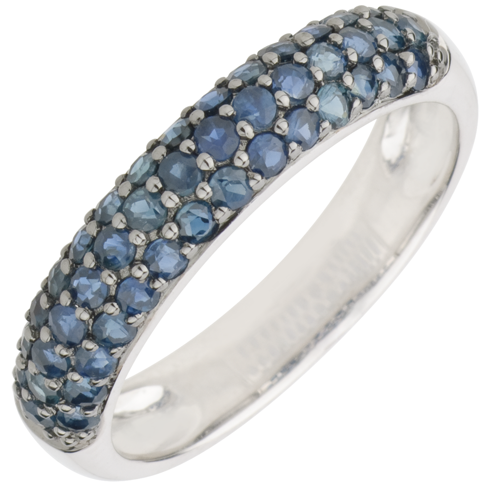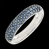 Anello Uccello del Paradiso - tre file - Oro bianco - 9 carati - Zaffiro blu