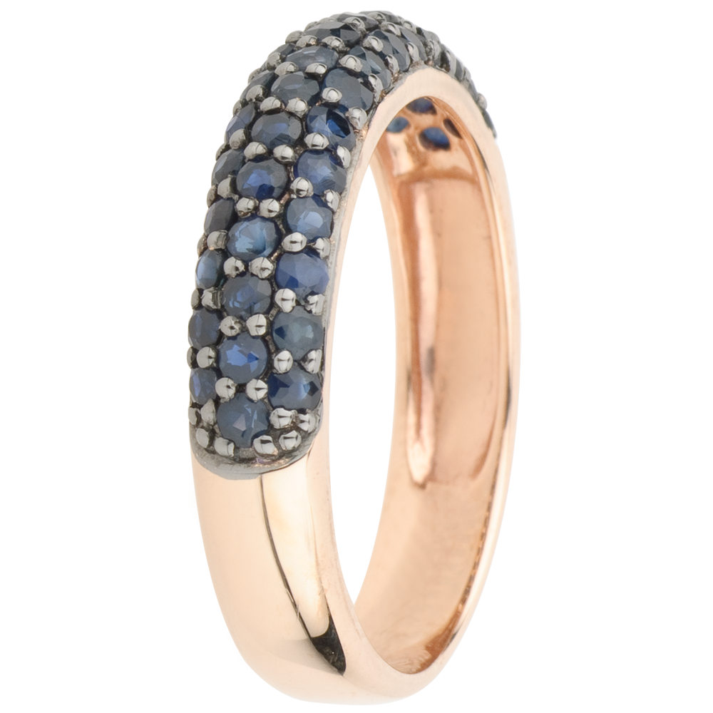 Anello Uccello del Paradiso - tre file - Oro rosa - 9 carati - Zaffiro blu