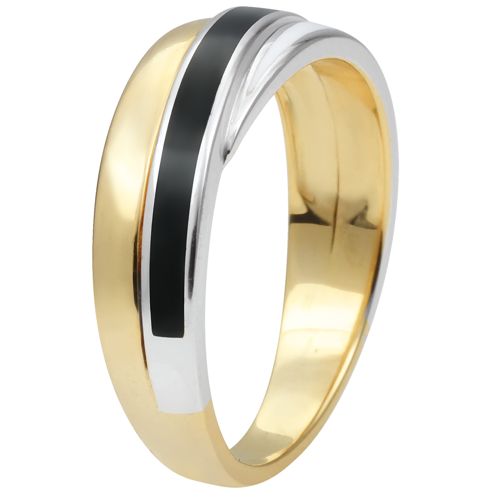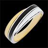 Anello Saturno - Duetto di lacca - Oro bianco e Oro giallo - 9 carati - Lacca nera e bianca