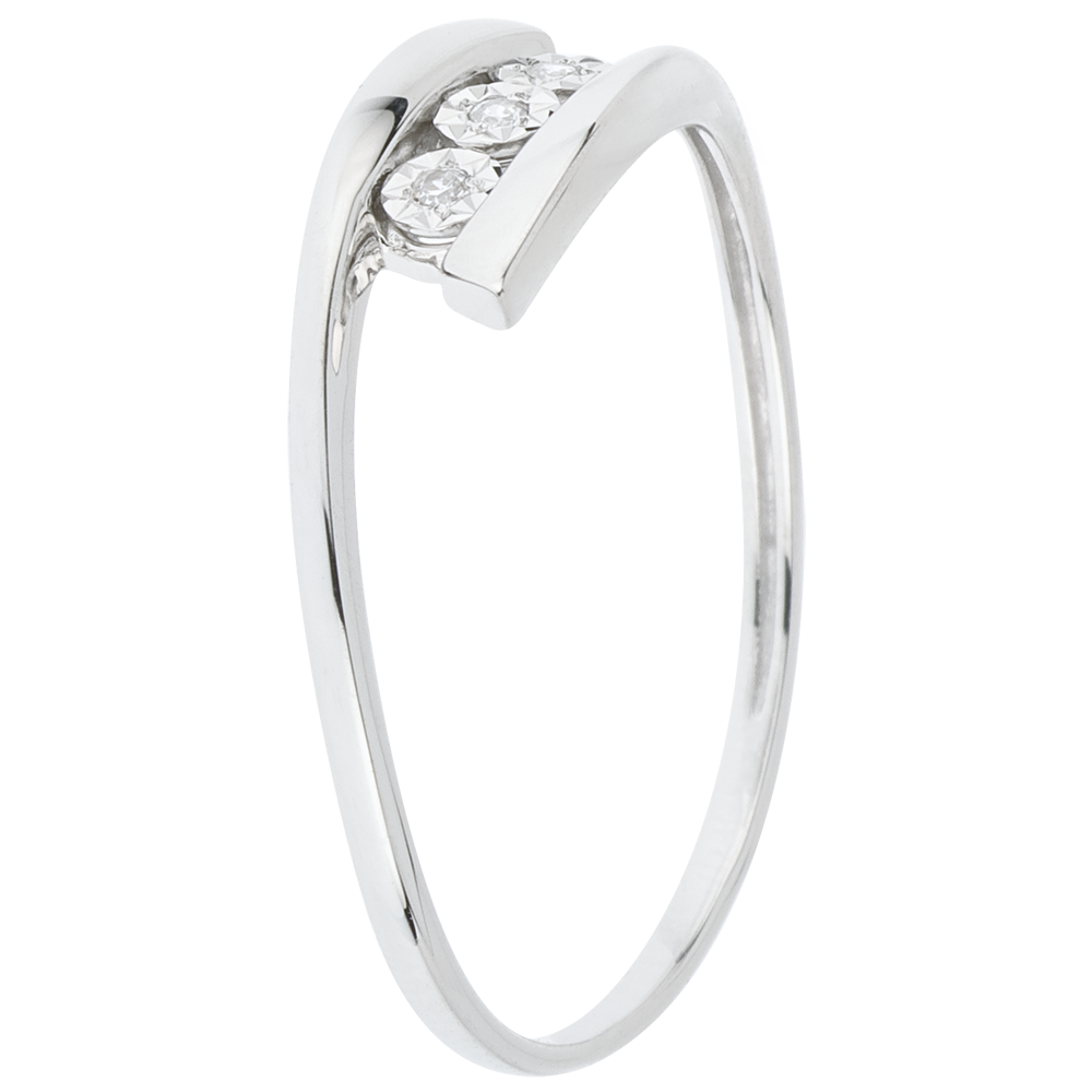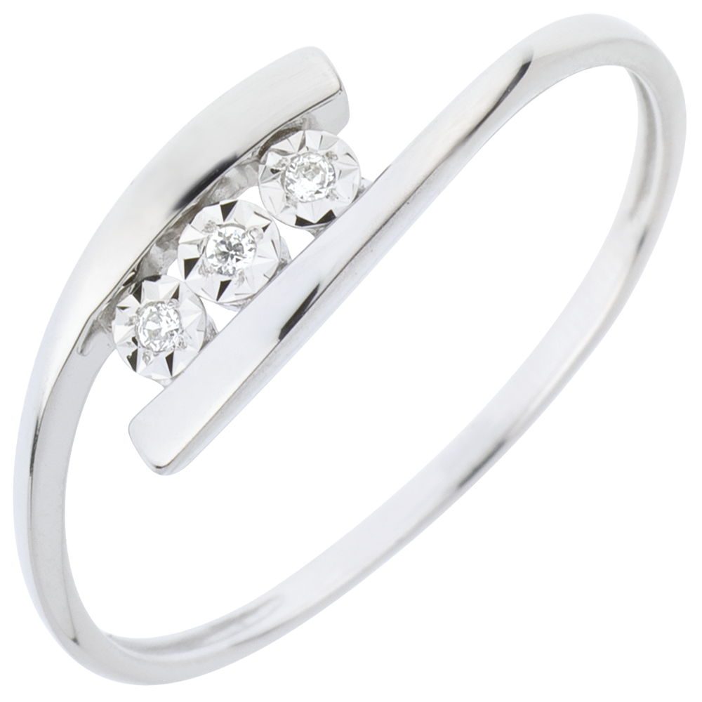 Tre diamanti racchiusi e sublimati da una montatura sinuosa in Oro bianco.