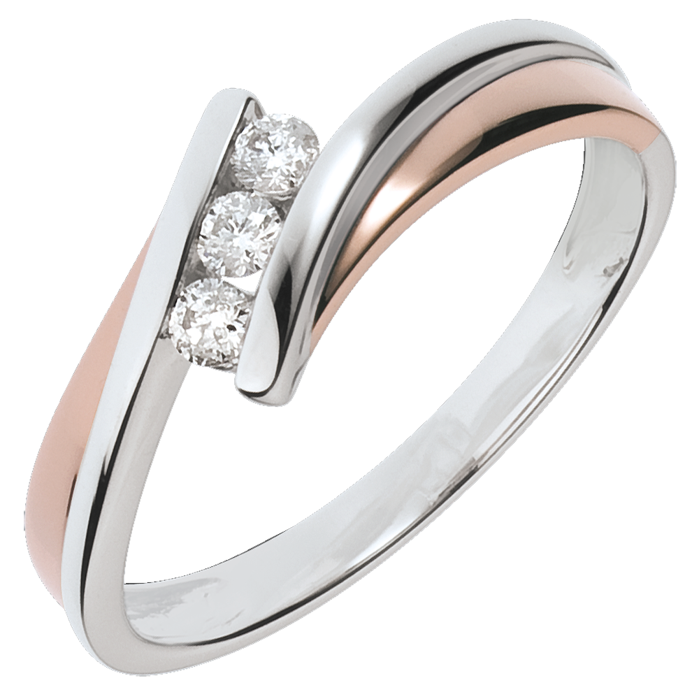 Anello di fidanzamento Nido Prezioso - Trilogia Diamante - Oro rosa - Oro bianco - 3 Diamanti - 18 carati