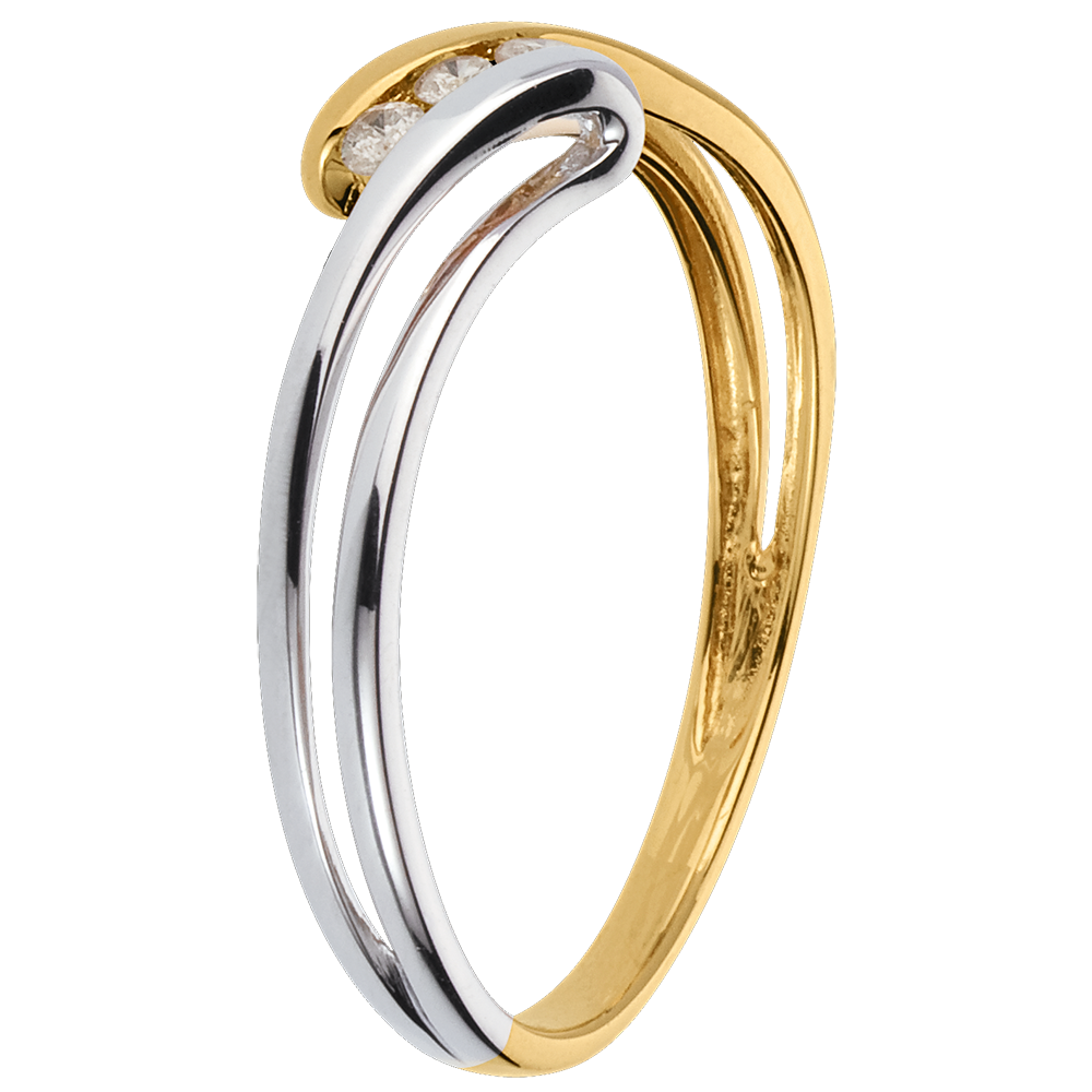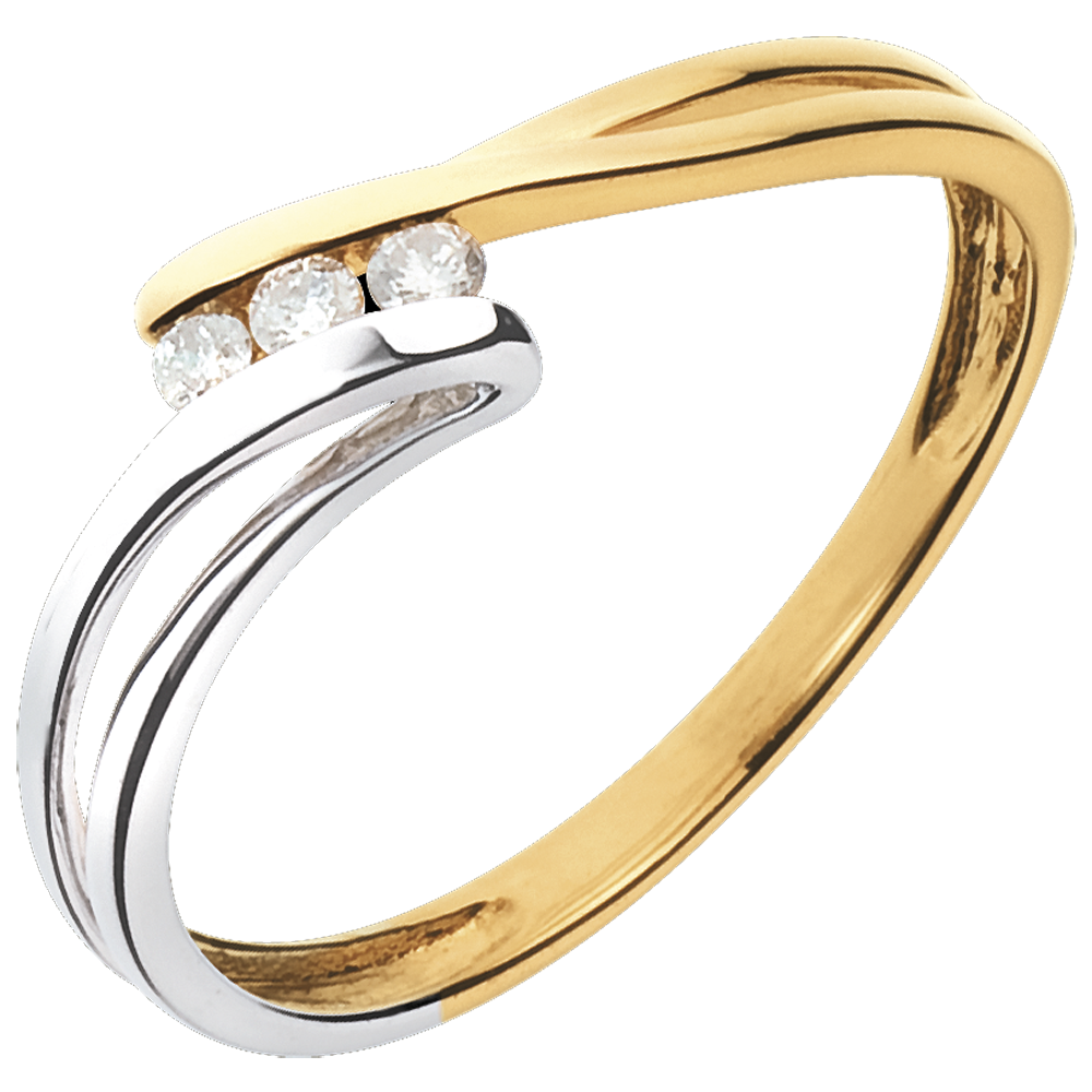 Anello trilogy Nido Prezioso - Brina - Oro giallo e Oro bianco - 18 carati - 3 Diamanti