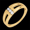 Una trilogia di diamanti tra le le linee parallele di una montatura in Oro giallo molto moderna.
