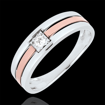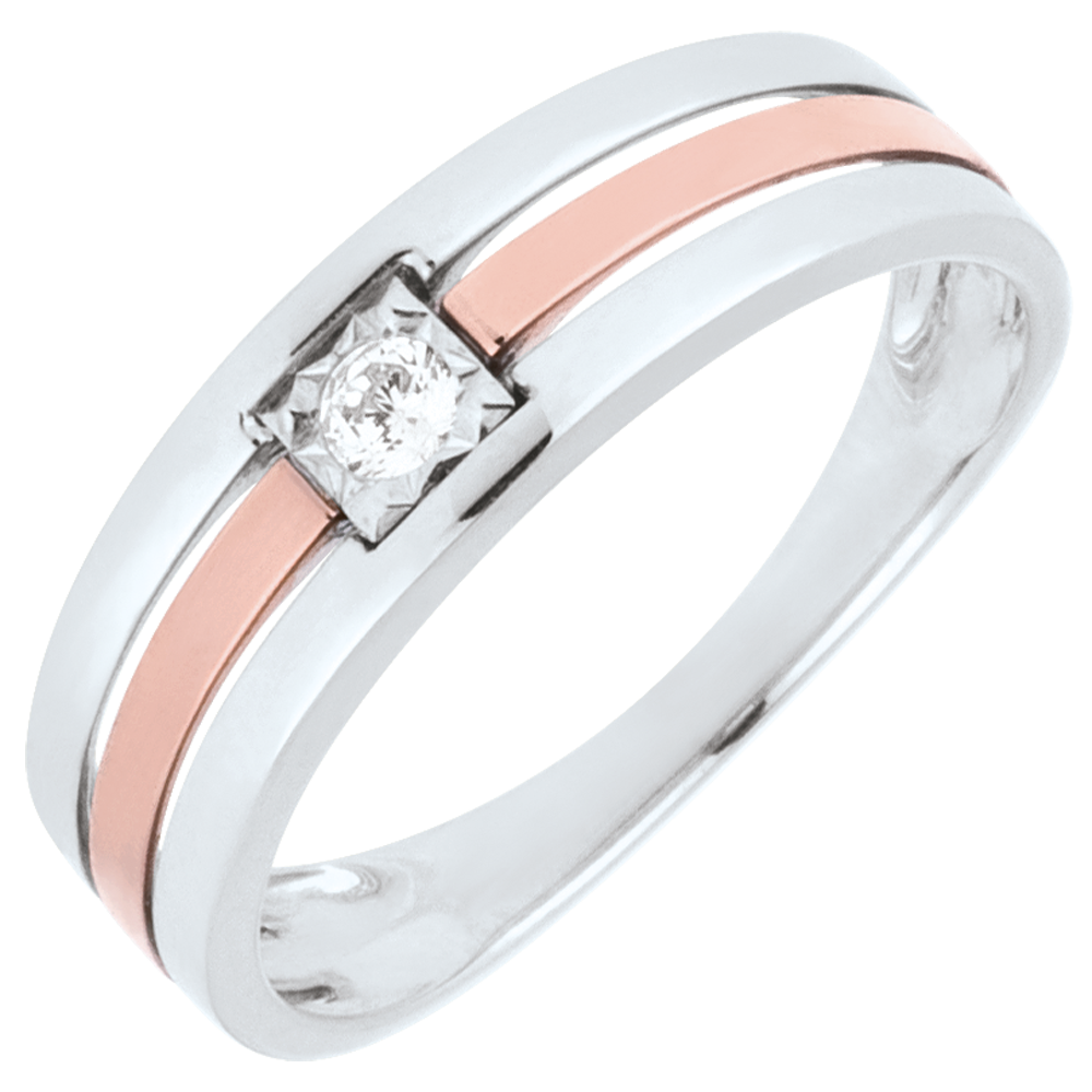 Anello Tripla fila - Oro rosa e Oro bianco - 9 carati - Diamante