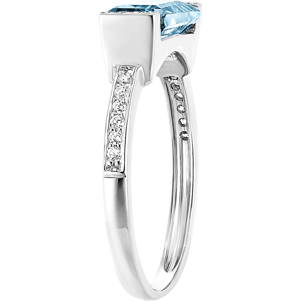 Scoprite questo anello largo in oro bianco 18 carati dal design rettangolare, impreziosito da un sontuoso topazio blu di 1,97 carati.