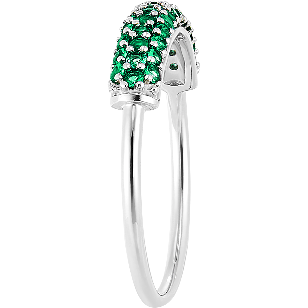 Un anello in oro bianco impreziosito da 40 smeraldi delicati disposti su tre file. Un gioiello classico e senza tempo, con un tocco di colore.
