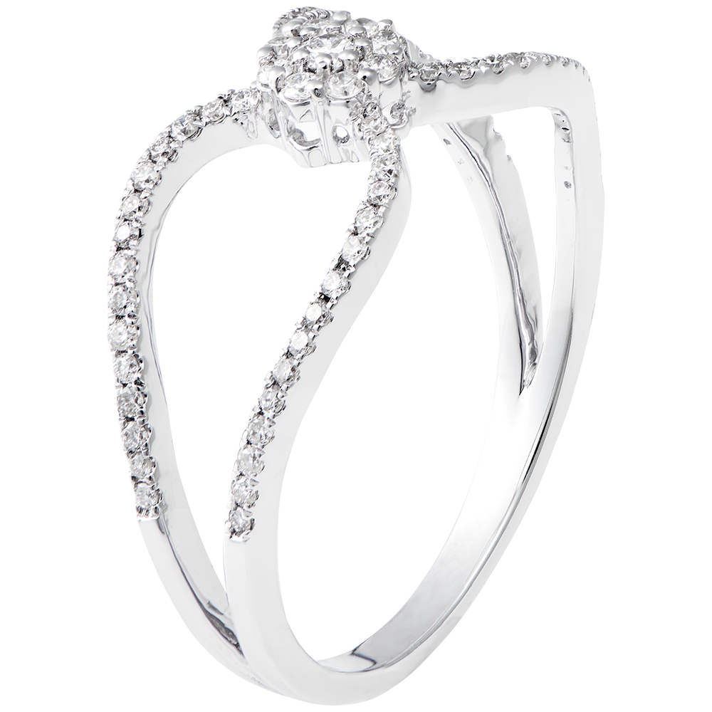 Une montatura delicata e tondeggiante in cui splende al centro un fiore di diamante. Un anello prezioso pieno di leggerezza.