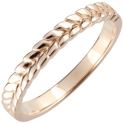 Un anello con un motivo di foglie d'Oro intrecciate sulla metà superiore del gioiello. Perfetto come fede originale e raffinata o come anello da abbinare ad altri bijoux..