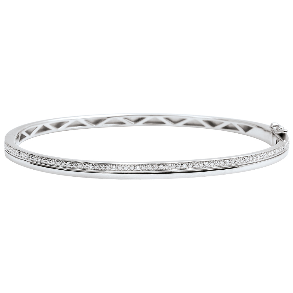 Un bracciale rigido elegante e femminile in oro bianco, sublimato dalla brillantezza del diamante.