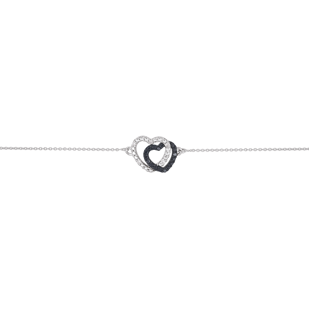 I cuori sono impreziositi dal brillante splendore di 5 diamanti e 4 diamanti neri scintillanti, che donano un tocco raffinato a questo bracciale.