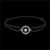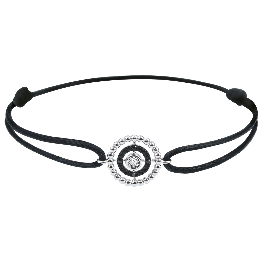Un cerchio di perle d'Oro bianco circonda un cerchio di diamanti con un solitario al centro. Bracciale di lunghezza regolabile: 18cm, 17cm, 16cm. Applicazione di 11mm di lunghezza e di 11mm di altezza.