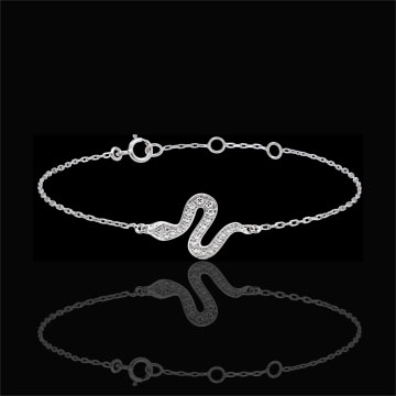Questo bracciale in Oro bianco dalle forme sinuose e affascinanti di serpente è adornato di diamanti per un look elegante e moderno.