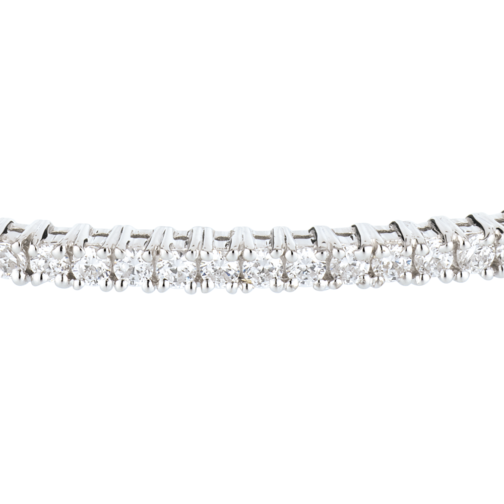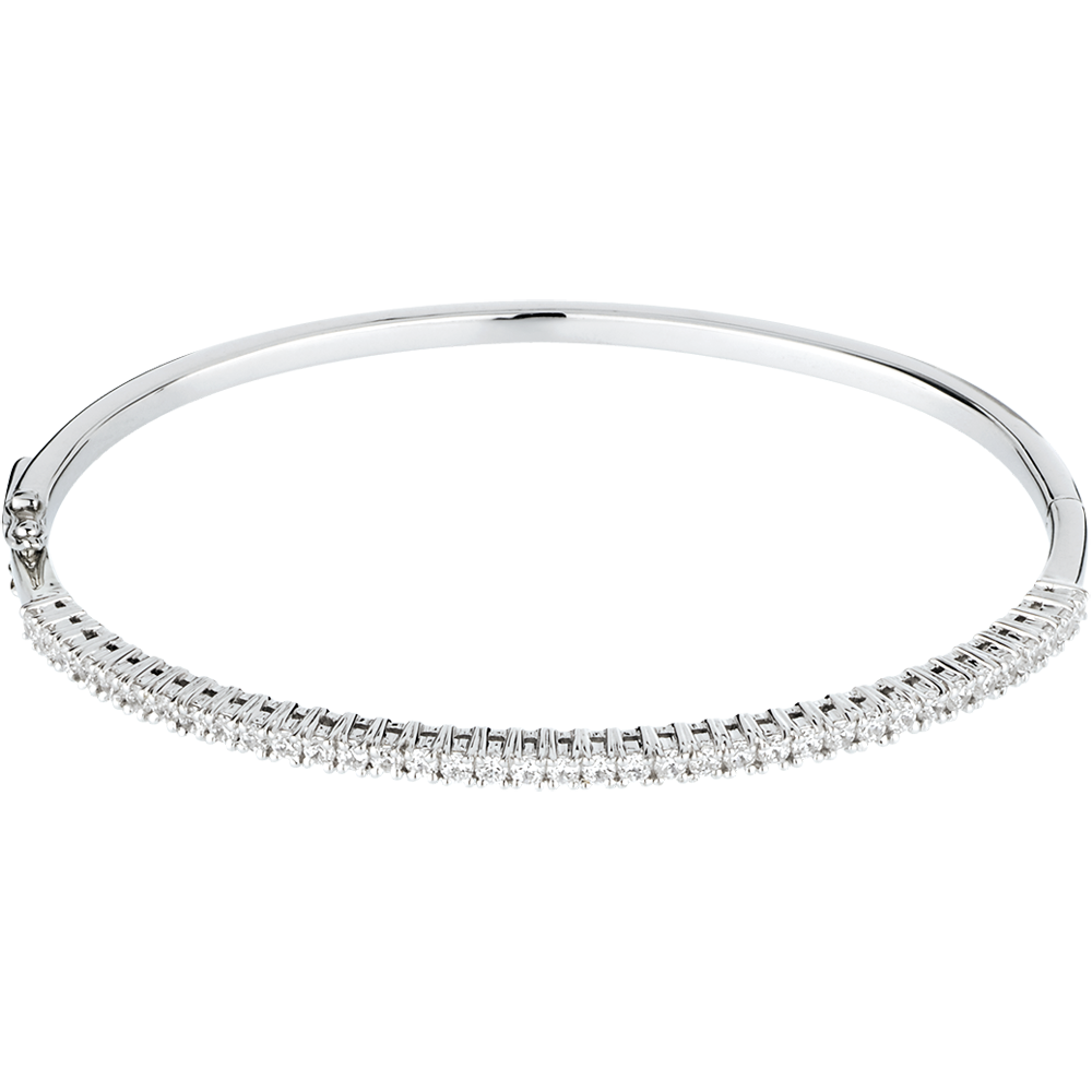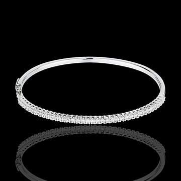 Un braccialetto rigido in Oro bianco elegante e raffinato, sottolineato con delicatezza da un semi-pavé di diamanti.