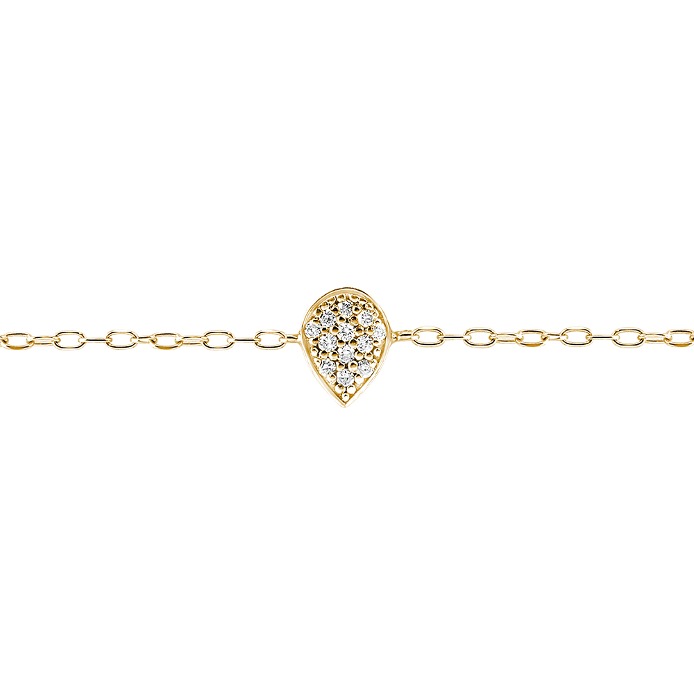 Una goccia impreziosita da un delicato pavé di diamanti, montata su un braccialetto a catenina in oro giallo. Un modello puro come le emozioni. Disponiblie nelle misure 18 cm e 16cm.